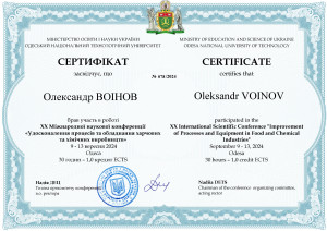 «Удосконалення процесів та обладнання харчових та хімічних виробництв»